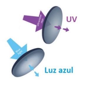 - Medición de la transmitancia de UV y luz azul