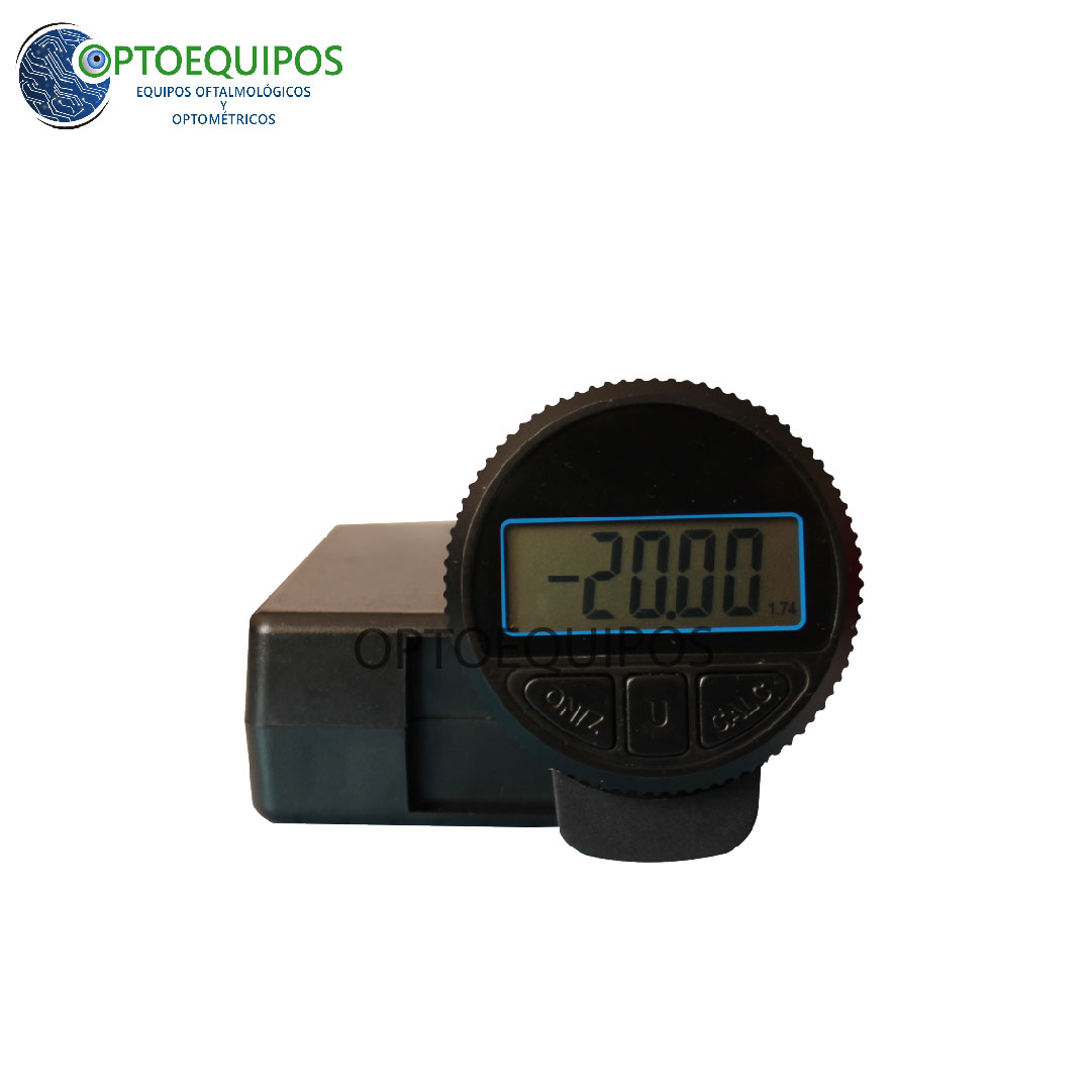 Esferómetro digital con 8 índices de refracción seleccionables. Rango: +/- 20.00D. Precisión: 0.25 D.